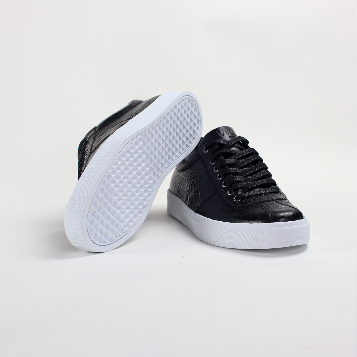 STOCK: 1Sneakers elaborados de cuero vacuno alusivo a la piel del cocodrilo, hechos a mano en Perú, con falza del cuero interna, para mayor durabilidad.